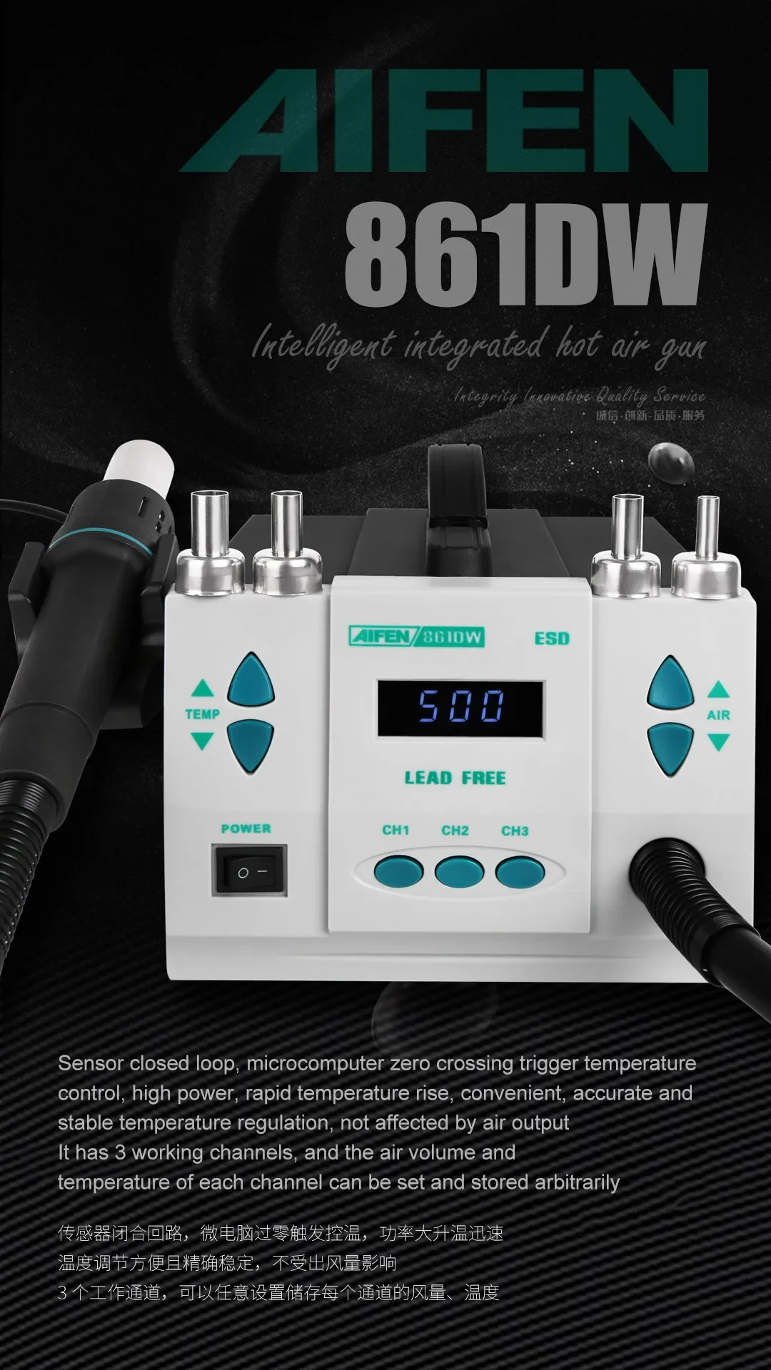 AIFEN 861DW hot air rework soldering station. Specification Reviews There are no reviews yet. Be the first to review “AIFEN 861DW hot air rework soldering station”Cancel ReplyYour email address will not be published. Required fields are marked *Your rating Rate… Perfect Good Average Not that bad Very poor Name *Email *Your review * Save my name, email, and website in this browser for the next time I comment. Submit