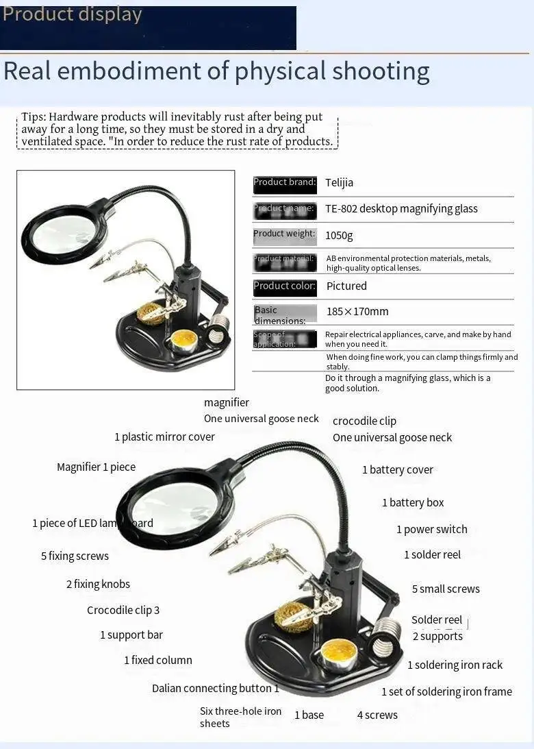 TE-802 Soldering Iron Station Stand With LED Welding Magnifying Glass Clip Clamp Helping Desktop Magnifier Soldering Repair Tool. Reviews There are no reviews yet. Be the first to review “TE-802 Soldering Iron Station Stand”Cancel ReplyYour email address will not be published. Required fields are marked *Your rating Rate… Perfect Good Average Not that bad Very poor Name *Email *Your review * Save my name, email, and website in this browser for the next time I comment. Submit